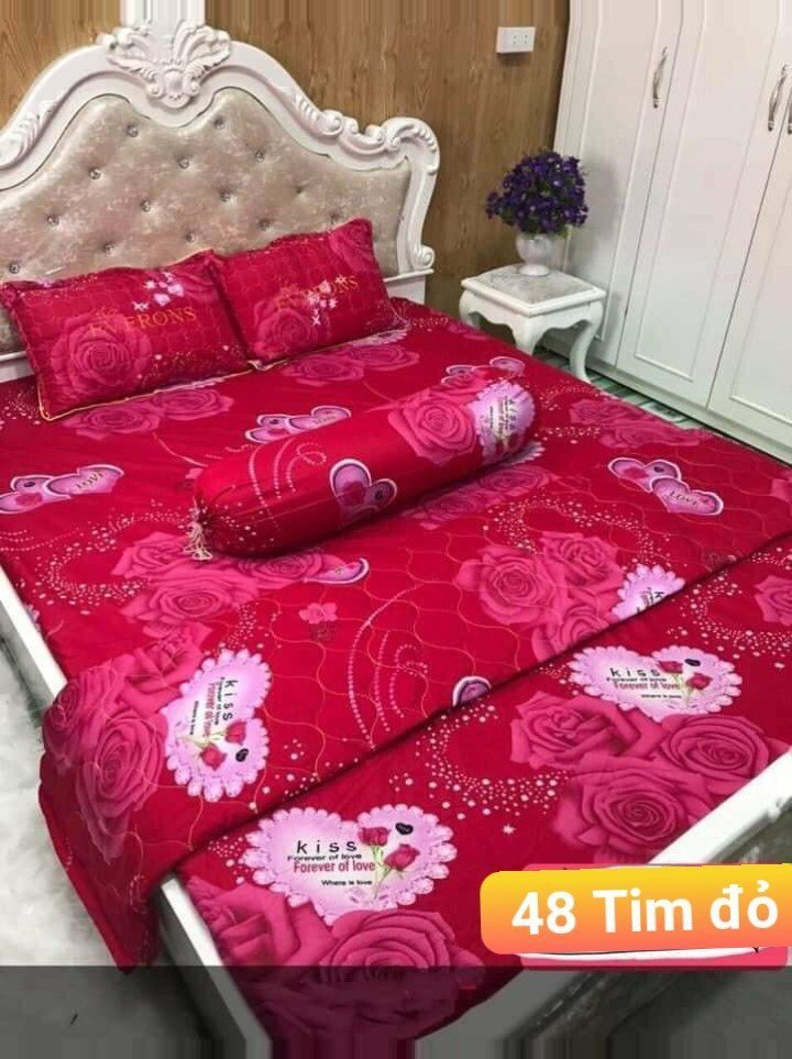BỘ CHĂN GA GỐI COTTON POLY TIM ĐỎ
